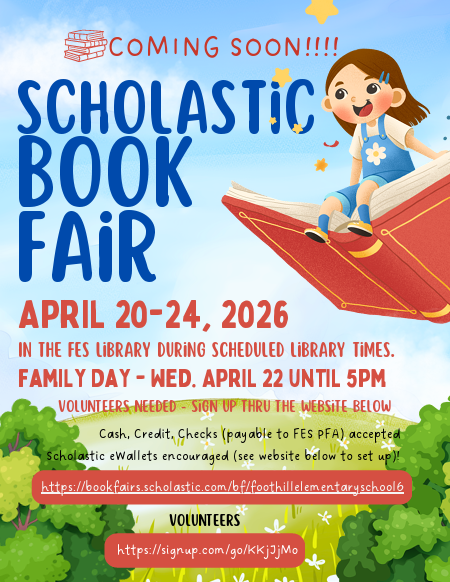 Good Afternoon, FES Parents!The Book Fair is April 20th-24th during school hours; on Wednesday, the Book Fair will be open until 5PM! We are encouraging parents to set up ewallets for classoom shop...
